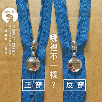 一般常聽到拉鍊有【正穿】、【反穿】,這是什麼意思呢?